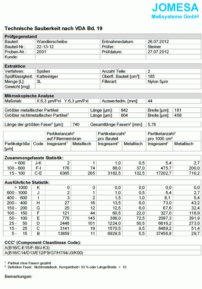 Berichte und Ergebnisse, Öl-Sauberkeit