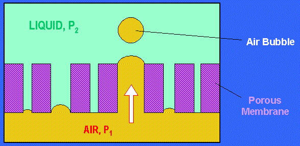 液体が細孔を押し通るのに必要な最小圧力は、最大の孔サイズに依存します。 この圧力をバブルポイント(圧力)と呼びます。 |